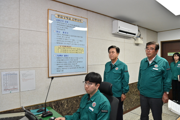 이후에는 보령종합체육관 앞 비상 급수시설을 찾아 정전 상황을 가정한 비상 급수 시연을 통해 비상시 급수 공급이 원활히 되는지 담당 실무자의 운용 능력을 확인했다.
