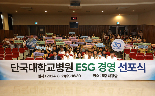 [충청뉴스 박동혁 기자] 단국대학교병원은 지난 21일 병원 대강당에서 'ESG 경영 선포식'을 열었다고 밝혔다.