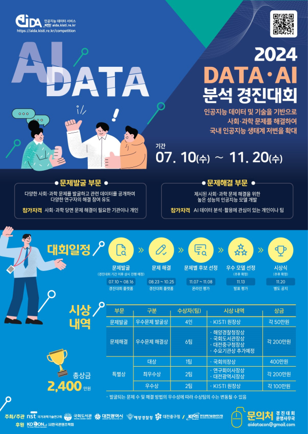 [충청뉴스 박영환 기자] 대전 중구는 한국과학기술정보연구원이 주관하고, 국가과학기술연구회, 국회도서관, 대전시, 해양경찰청, 중구청이 공동주최하는 ‘2024년 DATA·AI 분석 경진대회’에서 문제 제안자로 참여했다고 25일 밝혔다.