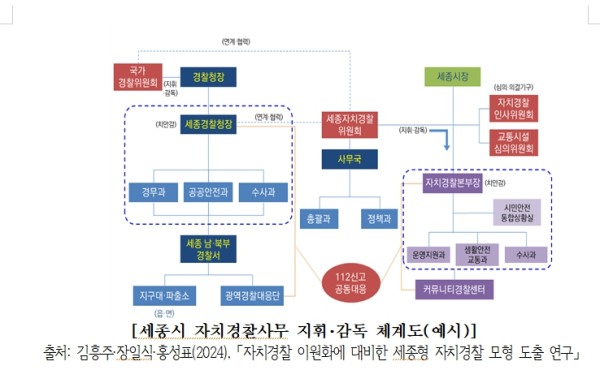 세종형 자치경찰제(지역사회경찰활동: community policing) 모형은 현 국가경찰 중심의 현행 지구대·파출소는 관할 지역의 치안유지, 방범순찰 등의 임무 수행을 주로 수행하는 등 기초치안활동 중심으로 치안서비스를 제공하게 되는데, 지역경찰과 민간부문(지역주민 등)이 상호협력을 통해 치안서비스를 제공하는데 한계가 있다는데 문제의식을 가지고 출발한다. 세종시에서 차용한 이론적 모델은 곽현근 교수(대전대)가 고안한 풀뿌리 주민자치 제도화 생태계 모형을 근거로 해서 도출하였으며 지역사회경찰활동을 실현하기 위한 가장 현실 적합한 모형으로 평가된다.