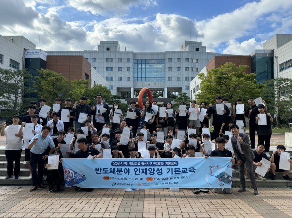 [충청뉴스 권상재 기자] 충남교육청은 지난 26~29일간 ‘직업교육 혁신지구 사업’에 참여하는 직업계고등학교 1학년 학생을 대상으로 반도체분야 인재양성 기본교육을 한국기술교육대학교에서 진행했다.