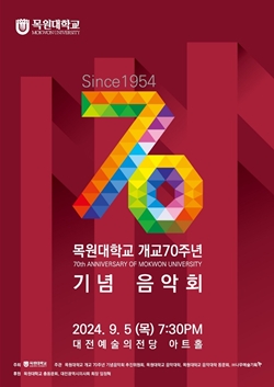 [충청뉴스 이성현 기자] 목원대학교는 개교 70주년 기념 음악회를 5일 오후 7시30분 대전예술의전당 아트홀에서 진행한다고 4일 밝혔다.