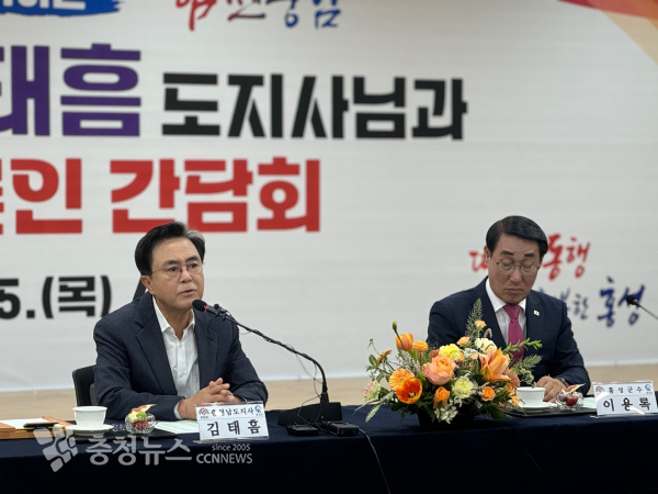 김태흠 지사는 5일 오전 민선8기 3년 차 시군 방문 열 한 번째 일정으로 홍성군 홍주문화회관 소공연장에서 간담회에서 “공공기관 이전문제는 대통령과 저의 공약이다. 반드시 이뤄져야 한다”고 강조했다.