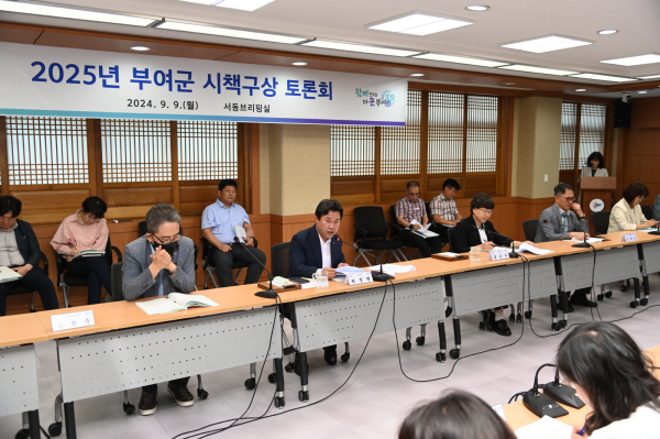 [충청뉴스 부여 = 조홍기 기자] 부여군(군수 박정현)은 지난 9일 군청 브리핑실에서 박정현 군수를 비롯해 부군수, 국장 등 전 부서장이 참석한 가운데 ‘2025년 시책구상 토론회’를 개최했다.