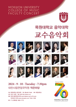 9일 목원대 음악대학에 따르면 오는 10일 오후 대전시립연정국악원 작은마당에서 ‘목원대 음악대학 교수음악회’를 진행한다.