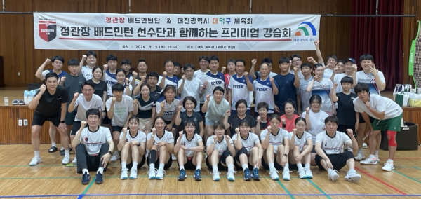 [충청뉴스 박영환 기자] 대전 대덕구는 지난 5일 정관장 배드민턴단이 대덕구 이문고등학교에 있는 대죽체육관을 방문해 ‘대덕구민과 함께하는 배드민턴 강습회’를 진행했다고 밝혔다.