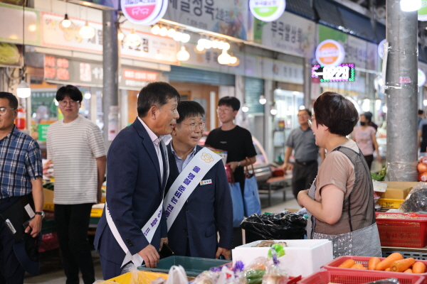 특히, 올해는 기록적인 폭우와 폭염으로 어느 때보다 힘든 시기를 보내고 있는 상인들과 군민들의 애로사항을 청취하며, 침체된 전통시장 활성화 방안에 대해 논의하는 시간도 가졌다.