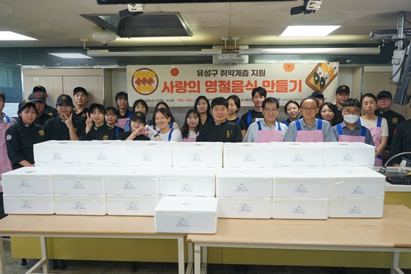 추석 명절을 맞아 진행된 이번 행사는 대덕대 K-외식조리과 교수진과 학생들이 관내 취약계층을 위해 직접 조리한 음식을 만들고 유성행복누리재단, 한국연구재단, 정보통신기획평가원, 사랑의 열매에서는 물품 후원을 하여 유성구 내 100가구에 전달했다.