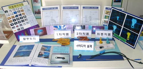 | ▲ 손가락이 바닥에 닿지 않는 컴퓨터용 마우스, 깔끔하고 편리한 케이블 팬션, 편리한 커피믹서 보관함 및 커터기, 중력가속도 측정정치, 휴대용 독서등, 시각 장애우를 위한 장기판 등 우수작품 | ||