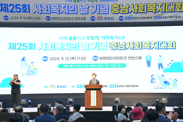 [충청뉴스 권상재 기자] 충남도는 12일 보령머드테마파크 컨벤션홀에서 도내 사회복지 종사자의 활동을 격려하고 응원하는 ‘제25회 충남 사회복지의 날 기념식’을 개최했다.