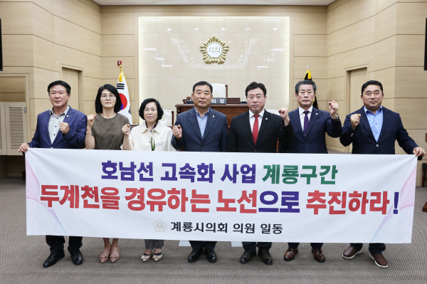 이날 계룡시의회는 호남선 고속화 건설사업을 예비타당성조사 노선으로 추진할 것을 강력히 요청하는 건의문을 채택하여, 뜻을 모은 건의문을 직접 국토교통부, 국회(국토교통위원회), 지역국회의원 등에 전달할 예정이다.