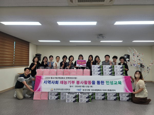 이번 후원은 논산여자상업고등학교의 ‘지역사회 재능기부 봉사활동을 통한 인성교육’의 일환으로, 학생들이 지역사회에 재능기부할 수 있도록 지원 해주는 사업이다.