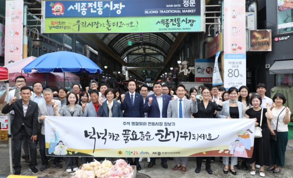 [충청뉴스 최형순 기자] 세종특별자치시의회(의장 임채성)는 추석 연휴를 맞아 상인들의 고충에 귀를 기울이고 지역경제를 활성화하고자 12일 조치원읍 세종전통시장과 금남면 세종대평시장을 방문했다.