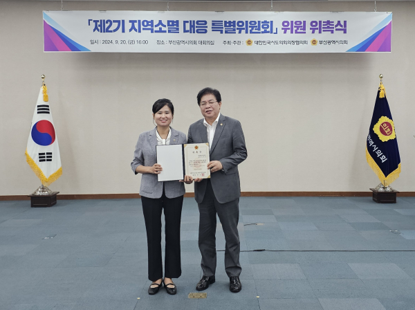 특히 ”신도심보다 읍면지역을 중심으로 생산가능인구인 청년층의 인구 비율이 지속해서 감소하고 있다”라고 전하며 “전국 시도의회와 머리를 맞대어 지역소멸에 대응할 적극적인 활동을 펼치겠다”라고 위촉 소감을 밝혔다.