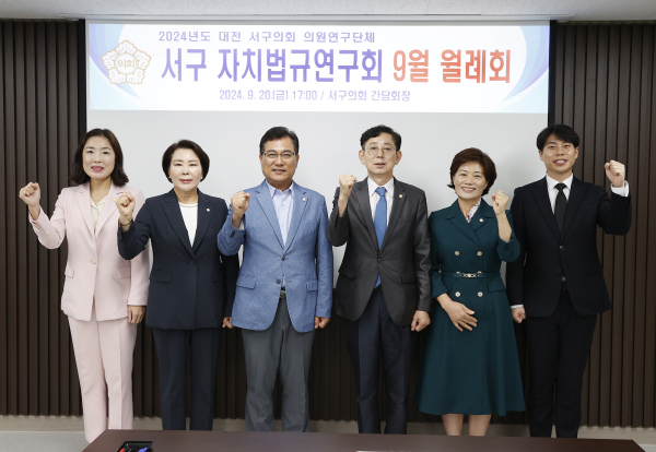 [충청뉴스 박영환 기자] 대전 서구의회 의원연구단체인 자치법규연구회(대표의원 박용준)는 20일 의회 간담회장에서 9월 월례회를 개최했다고 밝혔다.