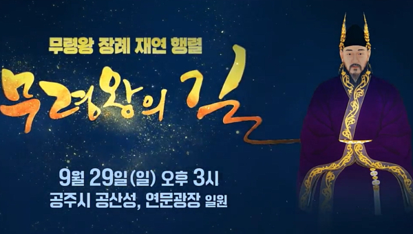 KBS대전방송총국이 주관하고 공주시백제문화선양위원회가 주최하는 '무령왕의 길' 행사는 지난해 대백제전을 맞아 무령왕 서거 1500주년을 기념해 야심 차게 선보였으며 올해 제70주년 백제문화제 기간인 29일 오후 3시부터 세계유산인 공산성 일원에서 단 한 차례 개최된다.
