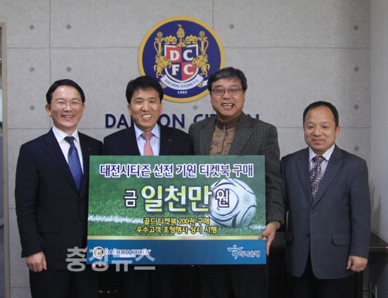 11일 오후 4시 30분 대전시티즌 구단 사무국에서 열린 협약식에는 하나은행 충청사업본부 함영주 대표와 송귀성 본부장, 대전시티즌 전종구 사장과 김춘호 전무이사가 참석했다. 하나은행 충청사업본부는 이 자리에서 2013시즌 대전시티즌 골드 티켓북 200권을 구입했다.