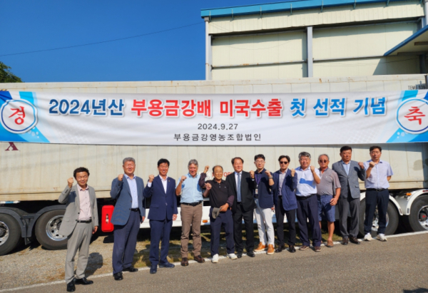 세종시 부용금강영농조합법인은 27일 부강면 수출선과장에서 세종 배(품종:신고) 28.5t을 미국 수출을 위해 선적했다.