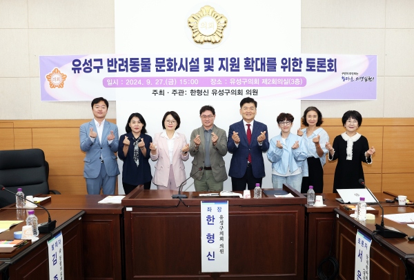 [충청뉴스 박영환 기자] 대전시 유성구의회 한형신 의원은 27일, 의회 제2회의실에서 반려동물 문화시설 확충 및 지원 확대를 주제로 한 토론회를 개최했다고 전했다.