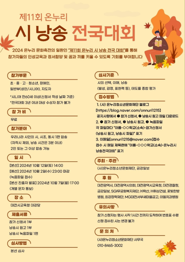 - ‘제11회 온누리 시낭송 전국대회’ 개최 인성교육과 정서 함양