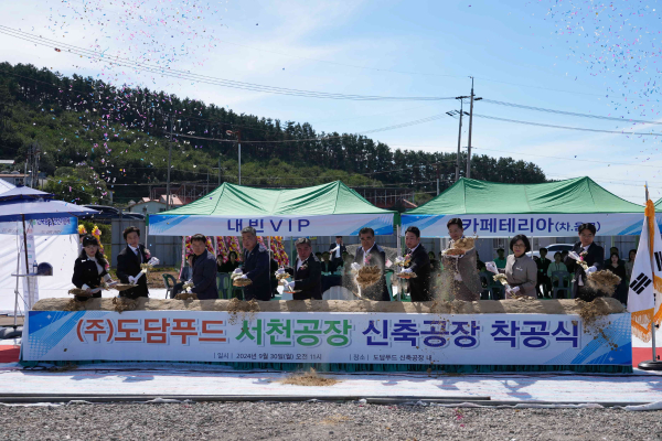 [충청뉴스 서천 = 조홍기 기자] (주)도담푸드는 지난 30일 김기웅 군수, 임직원 등 50여명이 참석한 가운데종천제2농공단지에서 공장설립을 공식 발표하고 착공식을 개최했다.