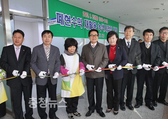 대전광역시 서구(구청장 박환용)는 지난 15일 10시 30분에 관련 단체장과 서구의원 등 관계자가 참석한 가운데 서구청 2층에 위치한「폐현수막 재활용 녹색 사업장」의 개장행사를 가졌다.