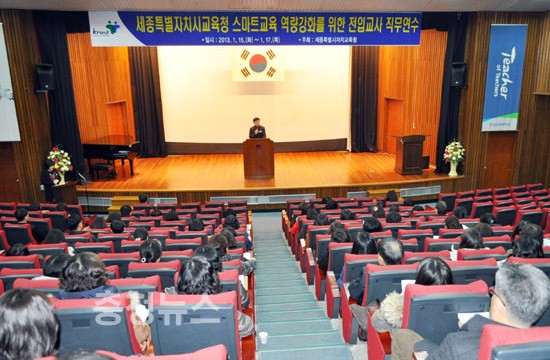 세종특별자치시교육청(교육감 신정균)은 한국교원대학교에서 1월 15일부터 17일까지 3일간 유?초?중?고 전입교원 121명(3월 1일자)을 대상으로 스마트교육 사전연수를 실시한다고 밝혔다.