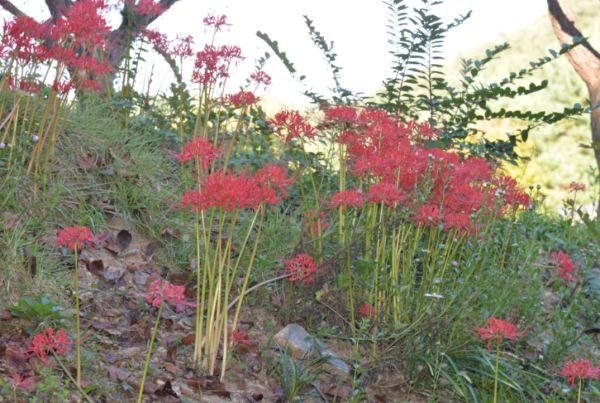 올해는 10월까지 폭염으로 구절초 개화 시기가 늦어져 영평사 관계자들을 애태웠으나 붉은 상사화가 활짝 피어나 영평사를 붉게 물들이고 있다.