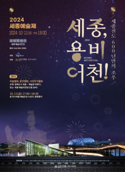 [충청뉴스 최형순 기자] 세종시가 주최하고 (사)한국예술문화단체총연합회 세종치시연합회가 주관하는 2024 세종종합예술제 ‘세종, 용비어천!’이 10일부터 11일까지 세종예술의전당에서 열린다.