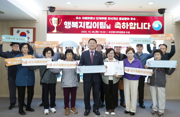 [충청뉴스 박영환 기자] 대전 서구는 보건복지부 주최로 진행된 ‘2024 우수 치매파트너 활동 경진대회’에서 서구치매안심센터 소속 행복지킴이팀이 우수상을 받는 쾌거를 이뤘다고 10일 밝혔다.