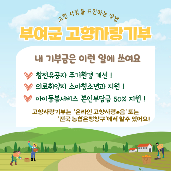 기부자가 기부금이 사용될 사업을 선택해 기부하는 ‘지정기부 사업’으로는 △참전유공자 주거환경 개선 사업을, 부여군으로 고향사랑기부한 ‘기금사업’으로는 △의료취약지 소아청소년과 지원과 △아이돌봄서비스 본인부담금 50% 지원사업을 추진한다.