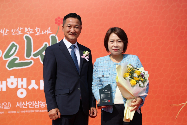 [충청뉴스 권상재 기자] 충남도의회 이연희 의원(서산3·국민의힘)이 지난 11일 ‘2024 서산6년근 인삼직거래 행사’에서 서산인삼협동조합으로부터 서산인삼 활성화에 기여한 공로를 인정받아 감사패를 받았다.