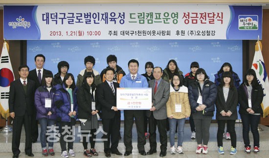 대전 대덕구(구청장 정용기)는 지난 21일 구청 및 경남 사천에서 ‘글로벌인재육성사업 희망두드림’ 성금 전달식 및 드림캠프(1박2일)를 진행했다.