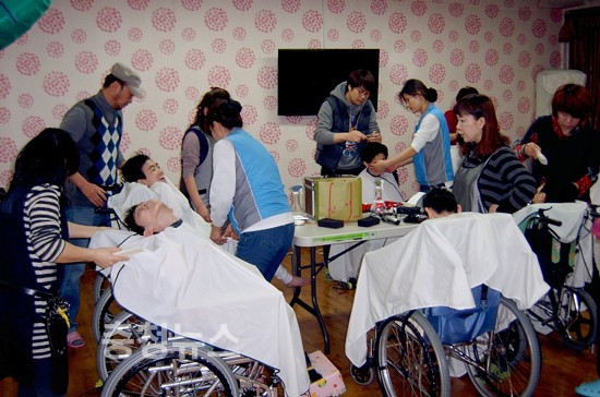 정신지체장애시설인 수양원과 한몸요양원 입소자들 무료 이·미용 봉사