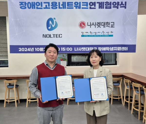 [충청뉴스 박동혁 기자] 나사렛대학교 장애학생지원센터는 놀텍과 장애학생의 예술 분야 고용 확대를 위해 협력한다고 25일 밝혔다.
