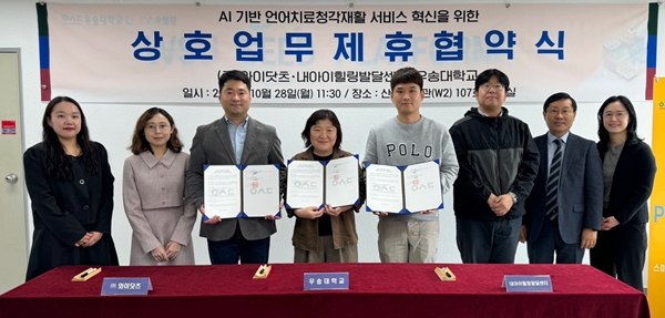 이수복 언어치료·청각재활학과학과장은 "이번 MOU를 통해 학생들이 최신 AI와 로봇 기술을 직접 경험하고, 미래 언어치료와 청각재활 분야를 선도할 융합인재로 성장할 수 있기를 기대한다”고 밝혔다.