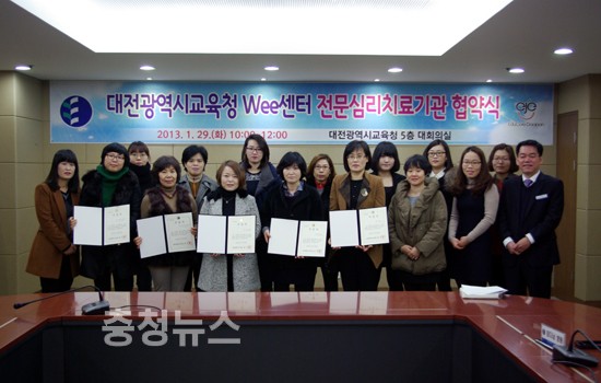 대전광역시교육청(교육감 김신호)은 1월 29일 오전 10시 대전시교육청 5층 대회의실에서 대전심리상담센터 등 전문심리치료기관 10개 기관과 위기 및 부적응학생에 대한 전문적인 치료서비스 제공을 위한 협약을 체결했다.