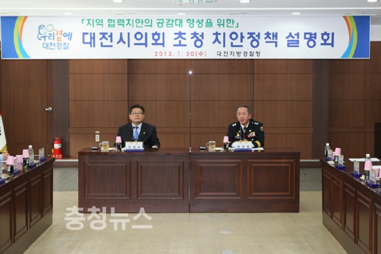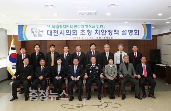 대전지방경찰청(청장 박상용)은 30일 오전 대전청 6층 대회의실에서 대전광역시의회 의장(곽영교) 및 시의원 25명을 초청, 지역치안에 대한 공감대 형성 및 협력을 위한 치안정책 설명회를 개최했다.