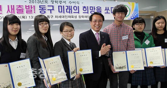 대전시 동구 차세대인재육성장학재단(이사장 김명길)은 31일 동구청 소회의실에서 2013년 상반기 장학증서 수여식을 가졌다.