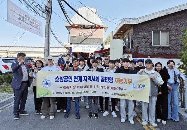 [충청뉴스 이성현 기자] 대전과학기술대학교는 대전 서구 도마큰시장에서 소방·산업안전관리학과 지도교수 및 학생 19명, 사업관계자가 참여해 소상공인 연계 지역사회 공헌형 재능기부 '전통시장 화재 예방을 위한 대학생 재능기부' 프로그램을 운영했다고 5일 밝혔다.