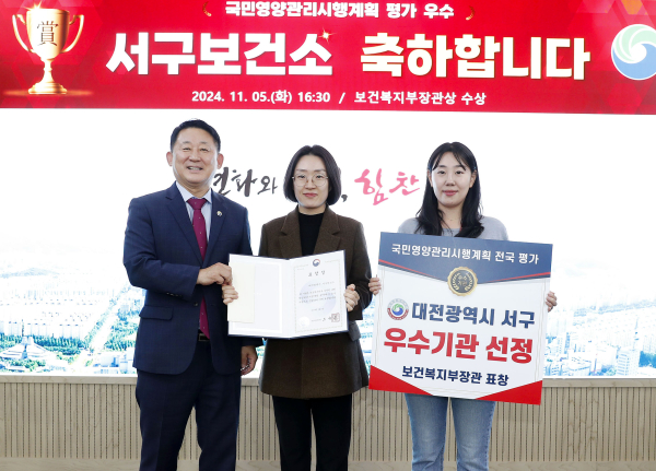 [충청뉴스 박영환 기자] 대전 서구는 ‘2024년 국민영양관리시행계획 평가’ 부문 우수기관에 선정돼 보건복지부 장관상을 수상했다고 6일 밝혔다.