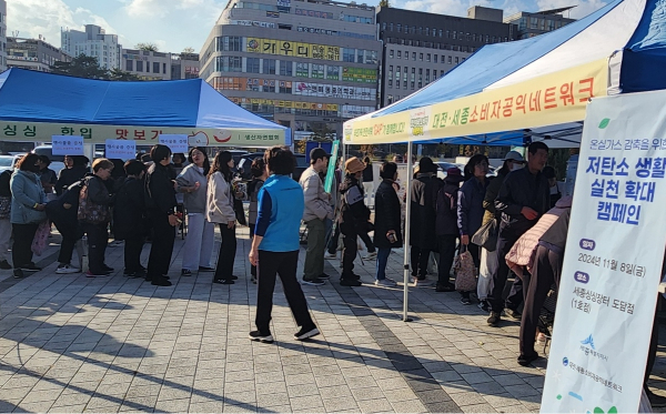 [충청뉴스 최형순 기자] 대전세종소비자공익네트워크는 8일 싱싱장터 도담점에서 생산자와 소비자 화합의장 행사장에서 온실가스 감축을 위한 저탄소 생활 실천 확대 캠페인을 펼쳐 시민들의 큰 호응을 얻었다.