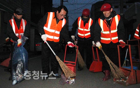 한현택 동구청장은 설 명절을 맞아 지난 4일부터 7일까지 환경관리요원들과 함께 새벽청소에 나서고 있다.