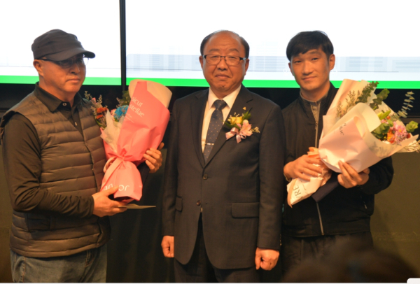 수상자와 함께 기념촬영 하는 하원선 협회장