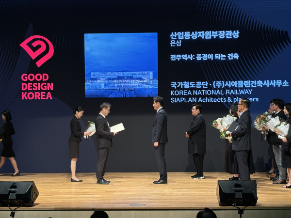 [충청뉴스 최형순 기자] 국가철도공단은 산업통상자원부가 주최하고 한국디자인진흥원이 주관한 '2024년 우수디자인(GD, Good Design) 선정 공모전'의 공간/환경 디자인 부문에서 전주역사 설계 디자인 작품 ‘전주역사: 풍경이 되는 건축’이 은상(산업통상자원부장관상)을 수상했다.
