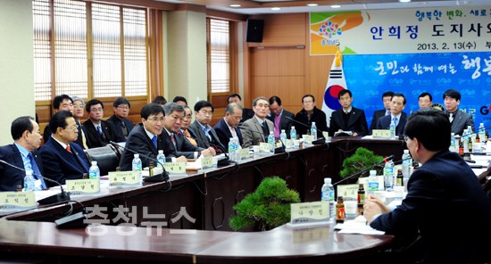 ▲ 안희정 충남도지사가 13일 부여군 방문, 군 공무원과 지역 기관장, 지역리더 등 대화를 가졌다.