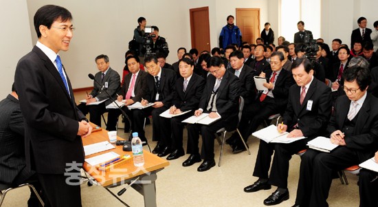 이어 혁신대학과 독서대학 등 도의 자기 주도적 행정 구현을 위한 학습·토론 분위기 조성 노력과 융복합 행정, 민·관 거버넌스 행정 등을 소개하며 “올해에는 성과 중심의 인사 정착을 위해 역량평가제와 직무성과평가제를 도입해 운영하고, 업무누수 0%, 정보공개 100%, 업무성과 100% 실현을 목표로 한 정보공개 혁신을 일굴 수 있도록 할 것”이라고 말했다.