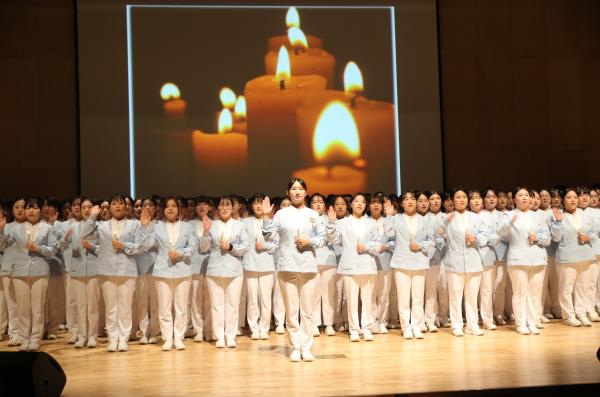 이날 행사에는 대학 설립자 김희수 명예총장 및 최임수 부총장, 배장호 건양대병원 의료원장, 이지은 건양대병원 간호팀장, 임효남 간호대학장, 교직원, 학부모 등 500여명이 참석해 예비 간호사들의 앞날을 축복했다.