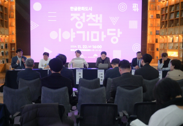 세종특별자치시(시장 최민호)는 지난 22일 시청 책문화센터에서 ‘한글문화도시 정책 이야기 마당’을 열고 복합문화공간으로서의 (가칭)한글문화 글로벌센터 조성 방향을 심도 있게 논의했다고 밝혔다.