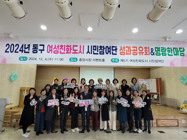 [충청뉴스 박영환 기자] 대전 동구는 4일 중앙시장 이벤트홀에서 여성친화도시 시민참여단의 ‘2024년 활동 성과공유회’를 개최했다고 밝혔다.